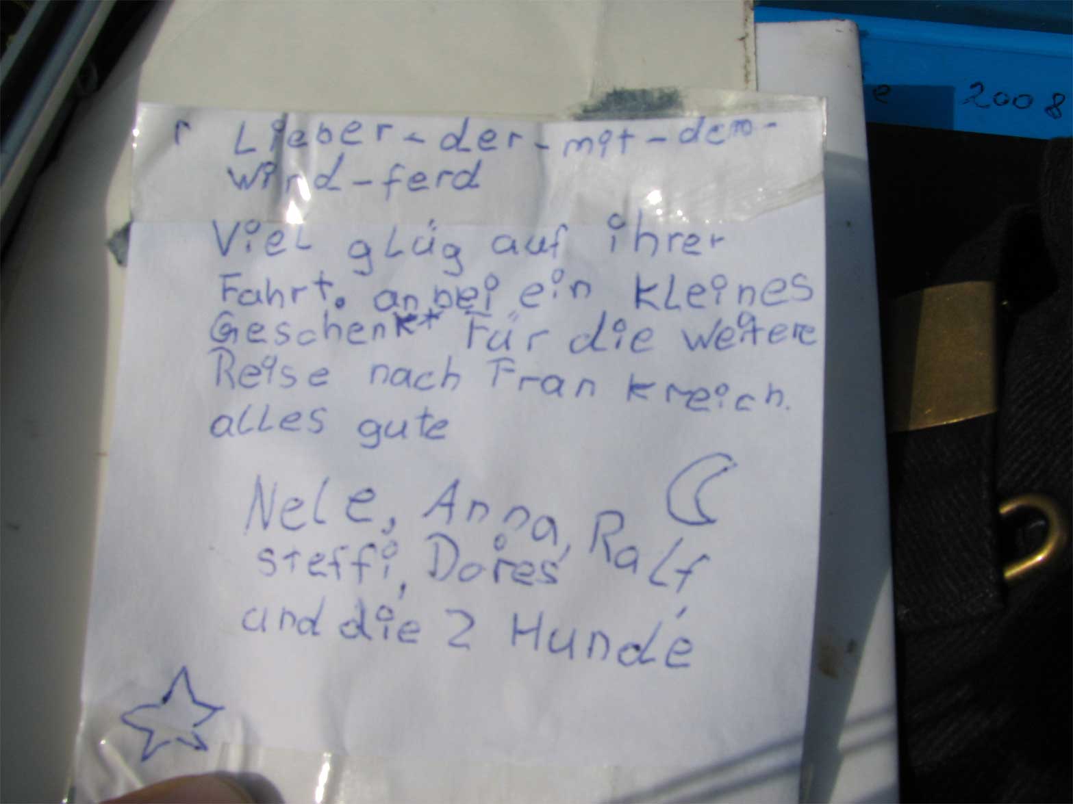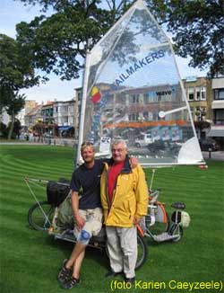 | De Panne Die Frage, welches Land am gastfreundschaftlichsten ist, brennt vielen auf der Zunge. Ich werde mich nicht dazu äußern! Unterm Strich sind die Menschen ein- fach unglaublich, wenn es darum geht, verrückte Sachen zu unterstützen. Dänemark ist menschlich und gastfreundschaftlich tadellos, Deutschland ist, und das werden viele gar nicht für möglich halten, total begeisterungsfähig und voll dabei. Ich hab hier tolle Leute kennengelernt. In meinem Heimatland war die Polizei bisher am aktivsten, hat aber unwahrscheinlich viel Herz für die Sache bewiesen. Holland (Niederlande! ist für einige wichtig), liegt Fahrradwege- technisch um Längen vorn und hat mich toll aufge- nommen und genauso unterstützt wie alle Anderen. Die Belgier sind total . . . zu Ende lesen Heute ist Montag, der 11.August 2008. De Panne, 4 km vor der französischen Grenze. Natürlich wollte ich heute rüber... wenn nicht neben mir an der Ampel der Europameister im Strandsegeln von 1969 gestanden hätte. Heute noch Wein bei Familie Demuysere und morgen dann auf nach Frankreich . . . na, wir werden sehen!!!! Bis zur nächsten Etappe Andreas Gabriel |  Diesen Brief lesen   Google map detaillierte Tagesetappen |