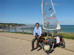 | Le Bourg Dune Frankreich!!! Jetzt müssten Sie mich grinsen sehen. ". . . da wirst du deine größten Probleme haben" hieß es. ". . . sprichst du Ihre Sprache nicht, lassen sie dich hängen wie einen Sack". ". . . da ist der Krieg doch heute noch nicht vorbei" und vieles mehr. All' das hab' ich in gewohnter Manier an mir abprallen lassen, und es macht sich wieder mal bezahlt. Wenn du mit Vorurteilen an eine Tür klopfst, wird sie sich nicht öffnen. DIE SPRACHE: Während die französische Sprache unter einer warmen Bettdecke hervorzukommen scheint, öffnen sich in einem Kohlebergwerk die Schächte und es erscheinen Deutsch und Englisch. Machen wir uns nichts vor, das ist ganz einfach so. Das sie sich an unsere Sprache nicht gewöhnen können, ja sogar wollen, . . . zu Ende lesen Heute ist Sonntag der 24.August 2008 in Le Bourg Dune und es regnet wieder mal in Strömen. Als nächstes Glanzstück werde ich versuchen, ein Stück östlich von Le Havre über die Autobahnbrücke zu segeln (von Erzählungen her soll es Fahrrädern erlaubt sein, darüber zu fahren). Das ist eine Bucht, in der der Wind ja wohl als halber Wind einfallen wird. (90 Grad zur Brücke). Wenn mir das gelingt, wird das jemand aufnehmen!!! Bis zur nächsten Etappe Andreas Gabriel |    Google map detaillierte Tagesetappen |