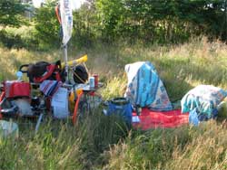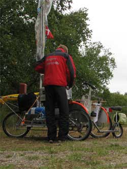 | Länderwechsel Noch 20 Kilometer und dann habe ich Dänemark im Kielasphalt (...im Kielwasser haben, kommt aus der Seglersprache). Zehn Tage in Bewegung, so wie ich es vorrausgesagt hatte. 450 km Strecke, die es echt in sich hatten. Fahrradwege von erstklassiger Qualität, aber nie zusammenhängend, so dass ich immer wieder auf die großen Straßen ausweichen musste. Das Segeln hier auf kleinen, wenig befahrenen Straßen in wundervoller Landschaft hat mich ent- schädigt für die ganze Buckelei in den hügeligen Gebieten um Hobro. Mein absolutes Highlight war der Moment, als ich mit Groß- und Vorsegel einen kleinen Trecker überholte. Er war nicht schnell, zugegeben, aber die Situation war klasse, und der Opa und ich haben uns weggeschmissen vor Freude. Die Schäden . . . zu Ende lesen Sonntag, der 06.07.2008, einen Steinwurf entfernt von meinem Land, das ich nun in Angriff nehmen werde. Auf Richtung Hamburg . . . Bis zur nächsten Etappe Andreas Gabriel |      Google map detaillierte Tagesetappen |