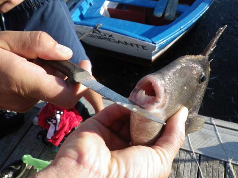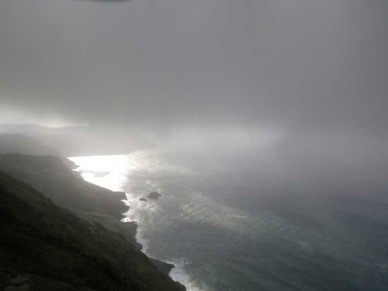 When I finally arrive in this bay at September 18th, I probably went through the worst 17 miles you can imagine. I saw the water out there, like I've never seen it before. The degree of its waves was impressive, yet dangerous in different levels. To fight against it was bad… to turn around was too dangerous. Like a wild guy, I sat very calm and worked with every wave. The wind pressure rose, while the power of my outboard motor fell. "Just 8 miles to go Andreas… your boat can do this!" Reaching three knots, this little box moves through a sea, which could frighten also a 50 feet yacht. With a height of up to 600 meters, these cliff lines don't hold any possibility for an escape. My bag filled with grapefruits slowly draws to a close. One of it jumps right towards me "You want me to eat you? ... Fine with me!" I smile silently about myself, thinking of