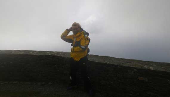 the picture of a small boat, and a beardy captain who is peeling a grapefruit from the bird's view. The sky is grey and seems threatening, meanwhile it is raining. I don't like having to pee in this situation, but even more I don't like to let it flow. Sometimes, though not very often, a question pops up in my head: "What the hell are you doing there?" During the last 17 miles, I had to get of my clothes five times to get rid of the pressure. The waves seem to have fun with this and they always catch me right in the moment I've already taken off my jacket.