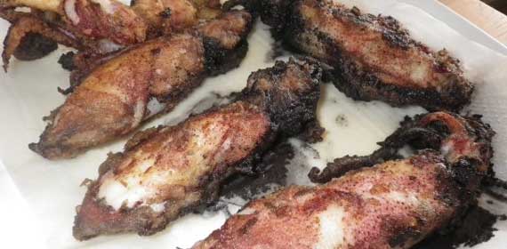 Santiago and me have moved my boat to the mooring last night. My sleeping site in his fishing hall was pure luxury, regarding the weather. I can even find a restroom with a hot shower and a toilet, though I wouldn't have the power to hold the shower head properly. For the first time during this voyage I feel like I'm getting sick. My voice is broken and this wet sleeping bag in the drafty hall B9 was a bit too much of a good thing. This young fisher hardly speaks English, so we talk in his apartment with the help of a computer translation program. I tell my story, until his head is filled and he can't listen any longer. We have lunch together, eating everything he caught: calamari in all kind of variety.