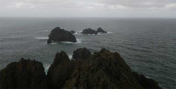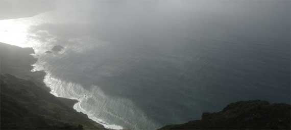 the right moment. In a fury, I scream: "You like that, right ... you like that? I'v done nothing to you ... NOTHING!!" My throat feels rough and I know it was too much again. After an eternity, at the entry of a bay, I pass the huge offshore cliffs, where one can see the water convulsing in an impressive way. I head towards South, entering the bay, but it's hardly getting calm. I manage the water in an eight, when a new pressure arises… this can't be true! My boat is in a perfect course, every move has to fit now… For peeing, I have to get rid of my safety rope, and the life vest.