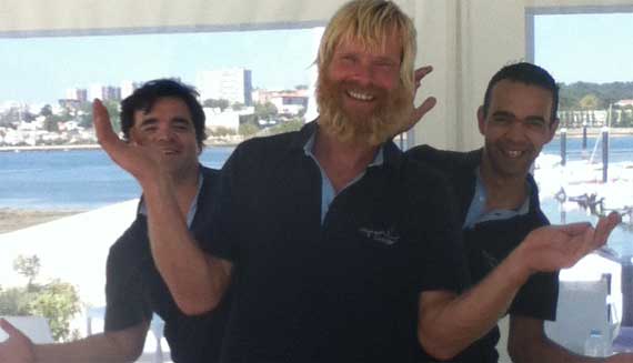 I try to miss the not disemboweled variation that still swims in its own ink, but I don't succeed finally. What a nice guy! He goes grocery shopping for me: food, petrol, oil ... we change the oil of my Portuguese fighting boat together, take pictures of the highest cliff of Europe, and spend a really great evening in his flat, when I also meet his girlfriend Cristina.