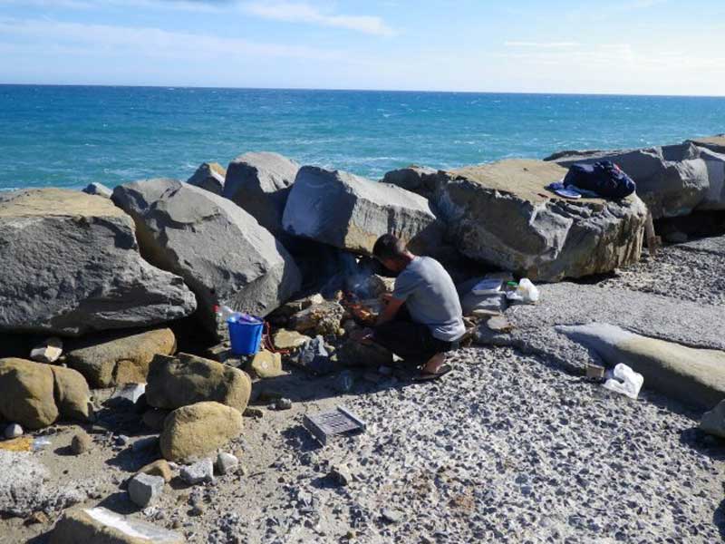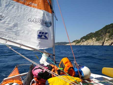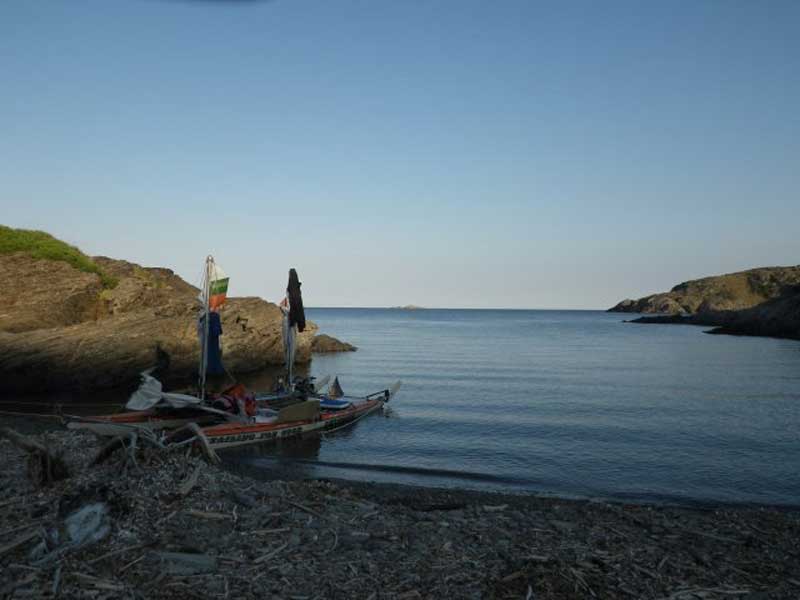 They have warned me of the fast winds around here and this challenging area that should last until I've reached Barcelona. I met a nice German family in the bay this evening, while I was landing. After this incident, I'm alone again. After I woke up, I can feel a stronger wind off-shore. The water movement is creeping more closely towards my bay. This is a clear sign. The wind must have gained a lot of power. The wind doesn't stay overnight very often. Especially it's not gaining speed in the morning. I don't spend much time packing and decide to move on . . . well, at least until I arrive
