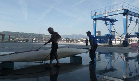 Antonio and Pedro, the marina's executives, stand behind me. "Let's go, buddy. Let's prepare everything!" In the evening, the masts are down, the boat is empty, and Sabrina and my friend "Doc" start their computers at home. Remember: it's Wednesday, 3rd October 2012.