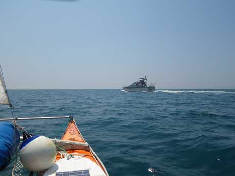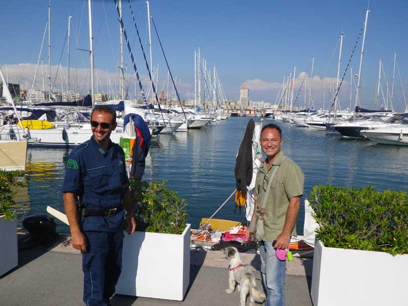12 miles in front of Nettuno, suddenly loud noises appear ... like a thunder… which is strange, as the sky is clear and blue. My trip continues with the visibility of the sea ground. I'm sailing close by an upstream cape ... and I'm gaining speed. The noises are getting louder and more constant ... what could that be? My God ... :-). I