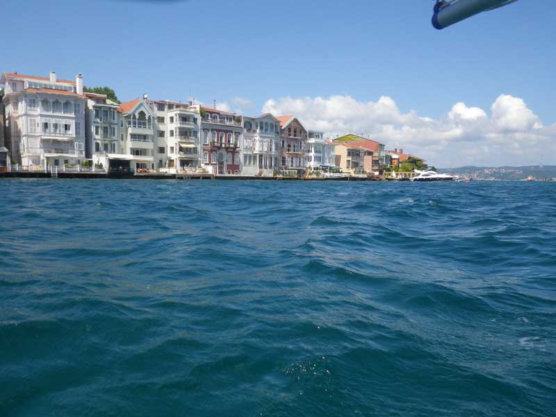 Unterstützt also von heimischen Gefühlen, sowie der Strömung hier, werde ich an diesem Tag förmlich hineingesogen in den Bosphorus. Das erste Mal auf dieser Reise empfinde ich wirklich soetwas wie Stolz. Ein unbeschreibliches Gefühl ist es, dass schwarze Meer mit diesem Boot besegelt zu haben und bei 4 Beaufort mit achterlichen Winden in diese hübsche, schlanke Verbindung nach Istanbul einzulaufen. Die Stadt näherte sich wesentlich schneller, als ich es mir vorgestellt hatte. Nur wenige Meilen später