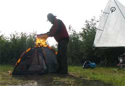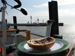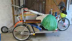 Kurz mal weg . . . ...für höchstens drei bis vier Tage, sagte ich meiner Familie, denn schon aus Konstrukteursneugier und Abenteuerlust war ich gezwungen, es im Straßenverkehr auszuprobieren. Zelt, Schlafsack und Kochgeschirr waren eingepackt, meine Kinder sicherlich sehr dankbar, dass sie meine Abfahrt schon morgens um fünf dokumentieren durften und dann ging es los. Anderthalb Stunden später, war ich dann auch schon wieder zu Hause - Bruch in der Lenksäule!! Unbeeindruckt, humorvoll und flexibel atmete ich also erneut die Luft meiner Werkstatt ein, wobei ich glaube, dieses Trauma bis heute nicht verarbeitet zu haben, denn ich kontrolliere ständig die Schweißnähte. Einen Morgen später erneuter Start und dann begann er: Ein Traumtörn auf drei Rädern! Anfänglich kommt man sich schon ziemlich exotisch, wichtig und stolz vor, da ein Segelfahrzeug auf Asphalt selten anzutreffen ist (übrigens nur möglich, wenn man vorausschauend allen Anderen Vorrang vor sich selbst gewährt, das Segeln beherrscht und sein Umfeld in diesen Spaß mit einbezieht). Nach und nach rückte ich selbst aber irgendwie in den Hintergrund, ich genoss zwar die Fahrt, aber mehr noch den Wahnsinn um mich herum. Nie zuvor hatte ich soviel Begeisterung, Offenheit und Herzlichkeit bei meinen als doch recht "trocken" bezeichneten Landsleuten erlebt. Autos verfolgten mich regelrecht um ein Foto zu schießen, ein bis zwei Stunden pro Tag führte ich nette Gespräche am Straßenrand, kochte einer Oma, die mir auf einem Radweg im Weg war, einen Kaffee, man überließ mir seinen Garten, sein Haus und seine Ferienwohnungen zum Nulltarif. Man bewirtete, behätschelte und betätschelte mich in einer Form, wie ich sie nicht zu beschreiben vermag. Wenn du es schaffst, mit nur einem Lächeln und diesem außergewöhnlichen Fahrzeug innerhalb eines Fingerschnippens Vertrauen und Freude zu verbreiten, dann war DAS der Mittelpunkt dieser Tour. Als ich nach 22 Tagen und 800 km "Norddeutschland Rund" heimkehrte, Zeitungen, Zeitschriften, Rundfunk und Fernsehen darüber berichteten, war ich mir im Klaren darüber, dass es sich hierbei nur um die erste Tour gehandelt haben konnte. Da war er also: der Asphaltsegler, der Tretsegler, das Optimistendreirad, das Segelfahrrad und: der-mit-dem-Wind-fährt! |